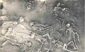 वहां ऐसे कई नर कंकाल इस स्थिति में प्राप्त हुए है मानो वो सभी किसी अकस्मात प्रहार में मारे गये हों तथा इनमें रेडिएशन का असर भी था |
