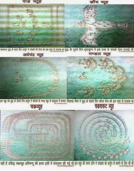 इसके बारे में सभी ने सुना है… इसकी रचना गुरु द्रोणाचार्य ने युद्ध के तेरहवें दिन की थी… दुर्योधन इस चक्रव्यूह के बिलकुल मध्य (Centre) में था… बाकि सात महारथी इस व्यूह की विभिन्न परतों (layers) में थे… इस व्यूह के द्वार पर जयद्रथ था… सिर्फ अभिमन्यु ही इस व्यूह को भेदने में सफल हो पाया… पर वो अंतिम द्वार को पार नहीं कर सका… तथा बाद में ७ महारथियों द्वारा उसकी हत्या कर दी गयी.